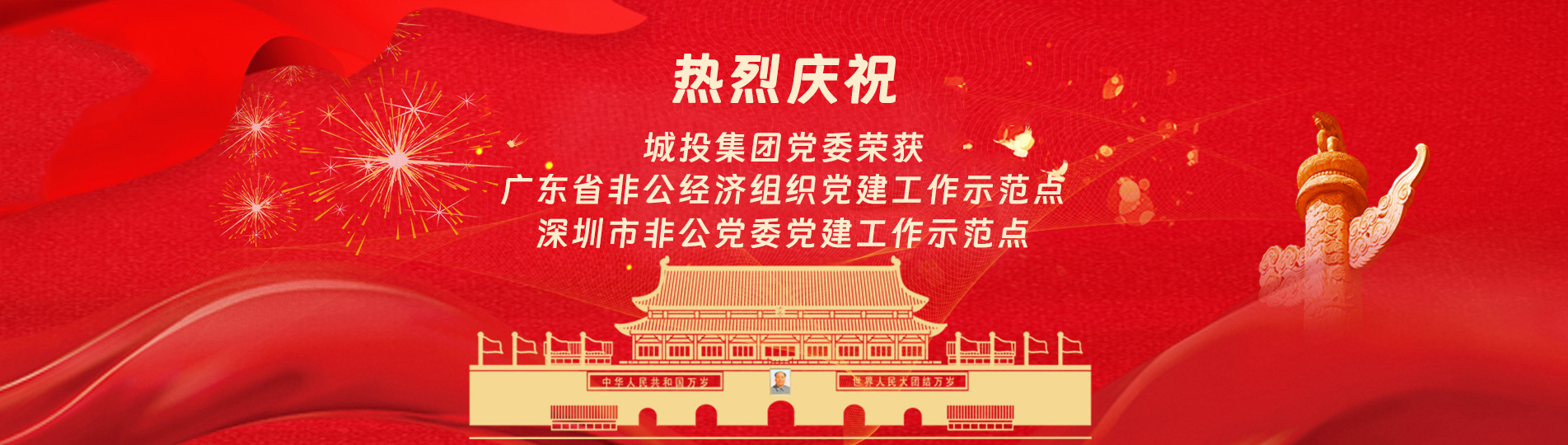 在上級(jí)黨委的正確領(lǐng)導(dǎo)下,在城投集團(tuán)的大力支持下,集團(tuán)黨委緊緊圍繞企業(yè)發(fā)展戰(zhàn)略,將黨建引領(lǐng)核心貫穿始終,以五心工程(即思政建設(shè)核心工程、經(jīng)營(yíng)發(fā)展中心工程、企業(yè)文化向心工程、黨建品牌匠心工程、服務(wù)基層愛(ài)心工程)為抓手,大膽探索,勇于突破和創(chuàng)新,不斷形成城投黨建特色,有效輸出城投實(shí)踐經(jīng)驗(yàn),充分發(fā)揮紅色引擎作用,先后獲得深圳市非公黨委黨建工作示范點(diǎn)深圳市兩新組織黨建工作示范點(diǎn)深圳市文明單位深圳市先進(jìn)基層黨組織廣東省非公有制經(jīng)濟(jì)領(lǐng)域黨建工作示范點(diǎn)等榮譽(yù)稱(chēng)號(hào)。